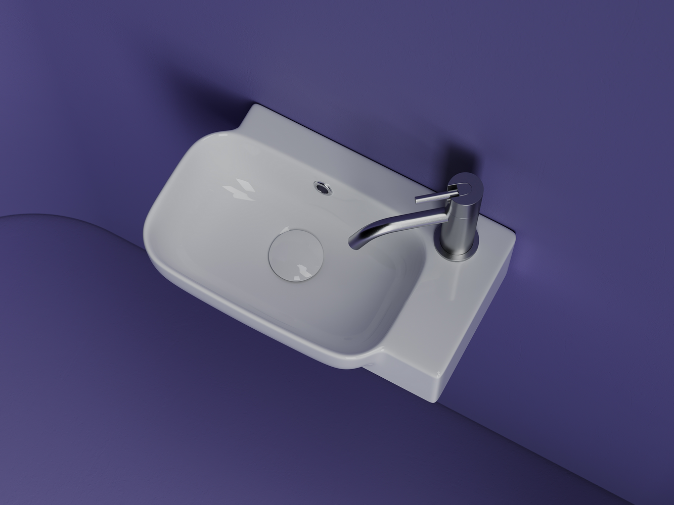 Рукомойник подвесной прямоугольный 403x249x140, с отверстием под смеситель (чаша слева, отверстие под смеситель справа), с системой перелива, цвет белый