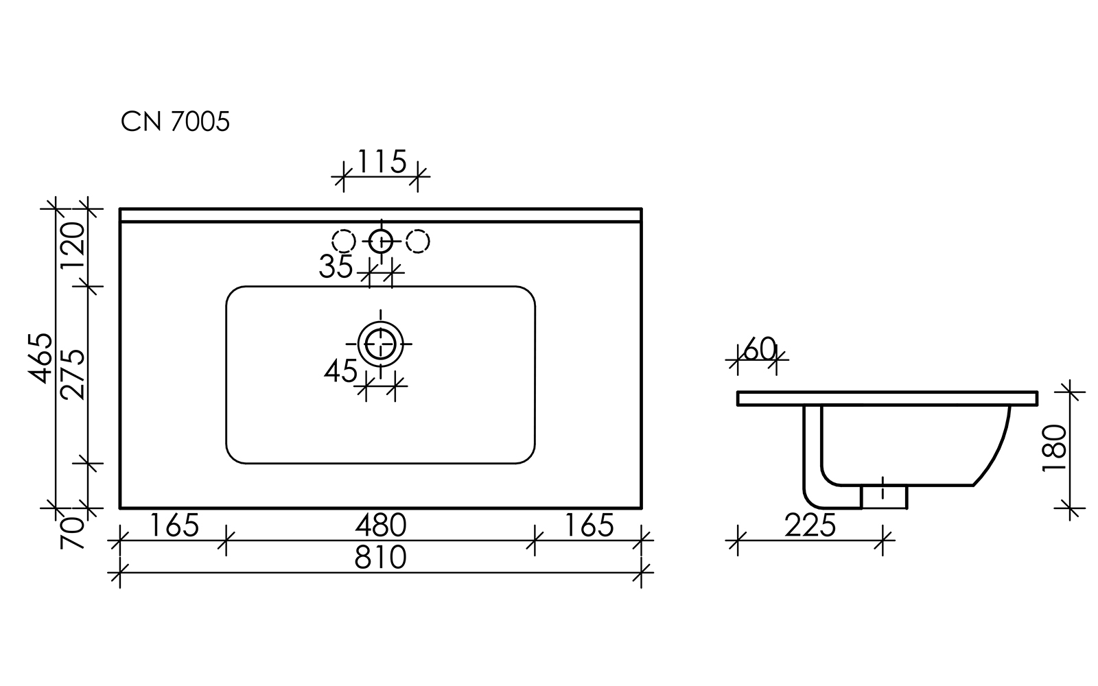 С отверcтием слива - перелива