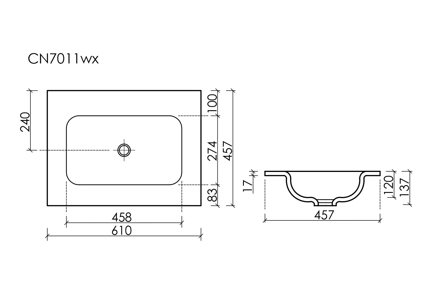 Раковина накладная мебельная Grace прямоугольная без отверстия под смеситель, 610x457x137мм, цвет белый, арт. CN7011wx