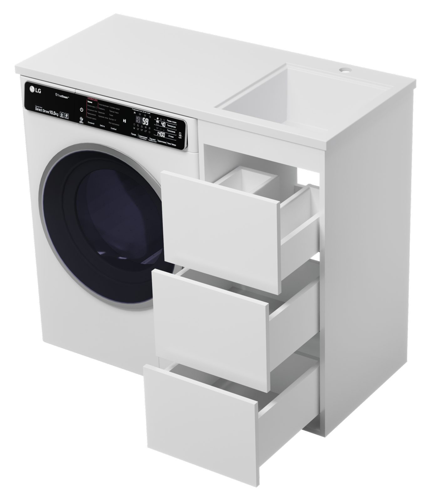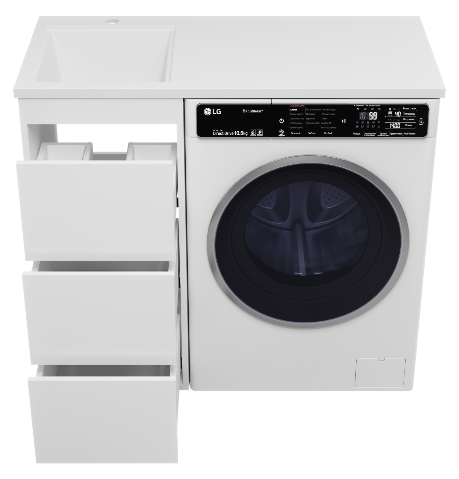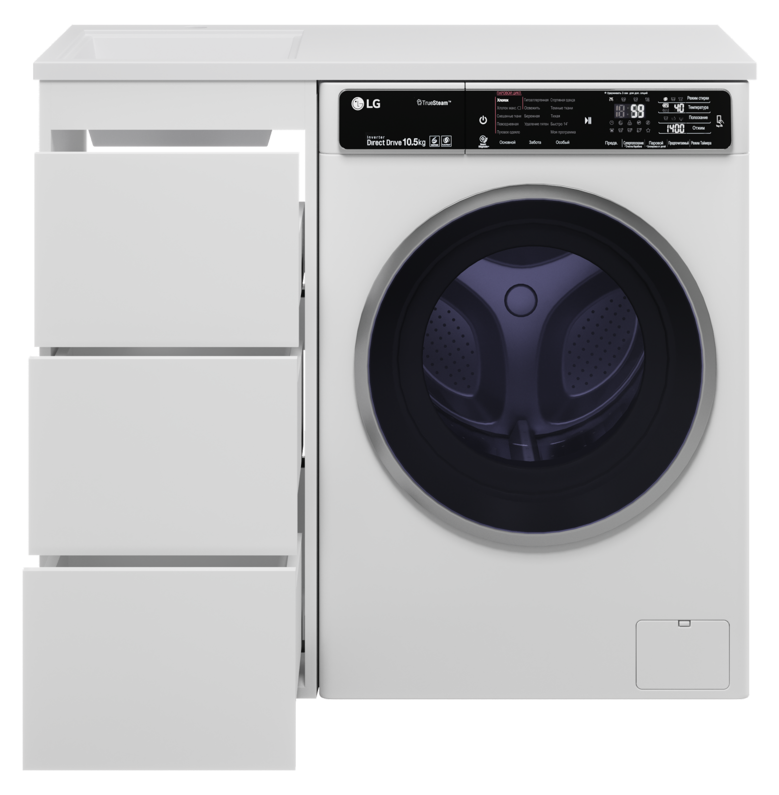 GRAFIT - 40 Тумба напольная 3 ящ. БЕЛАЯ под стиральную машину, ПВХ – купить за 31 830 ₽ | ПРО100 ВАННА