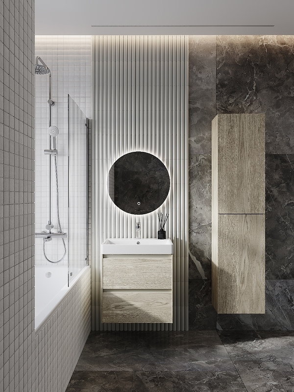 Открытие колонны осуществляется нажатием (система push-to-open), а петли Hettich, протестированные на 80 000 циклов открываний, обеспечат комфортное и долговременное использование.