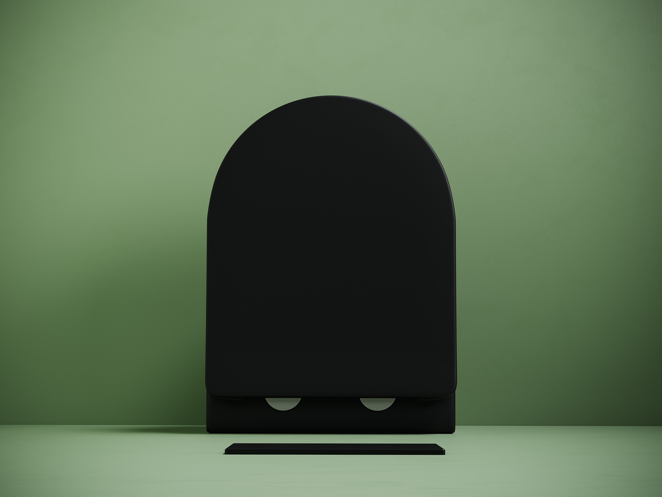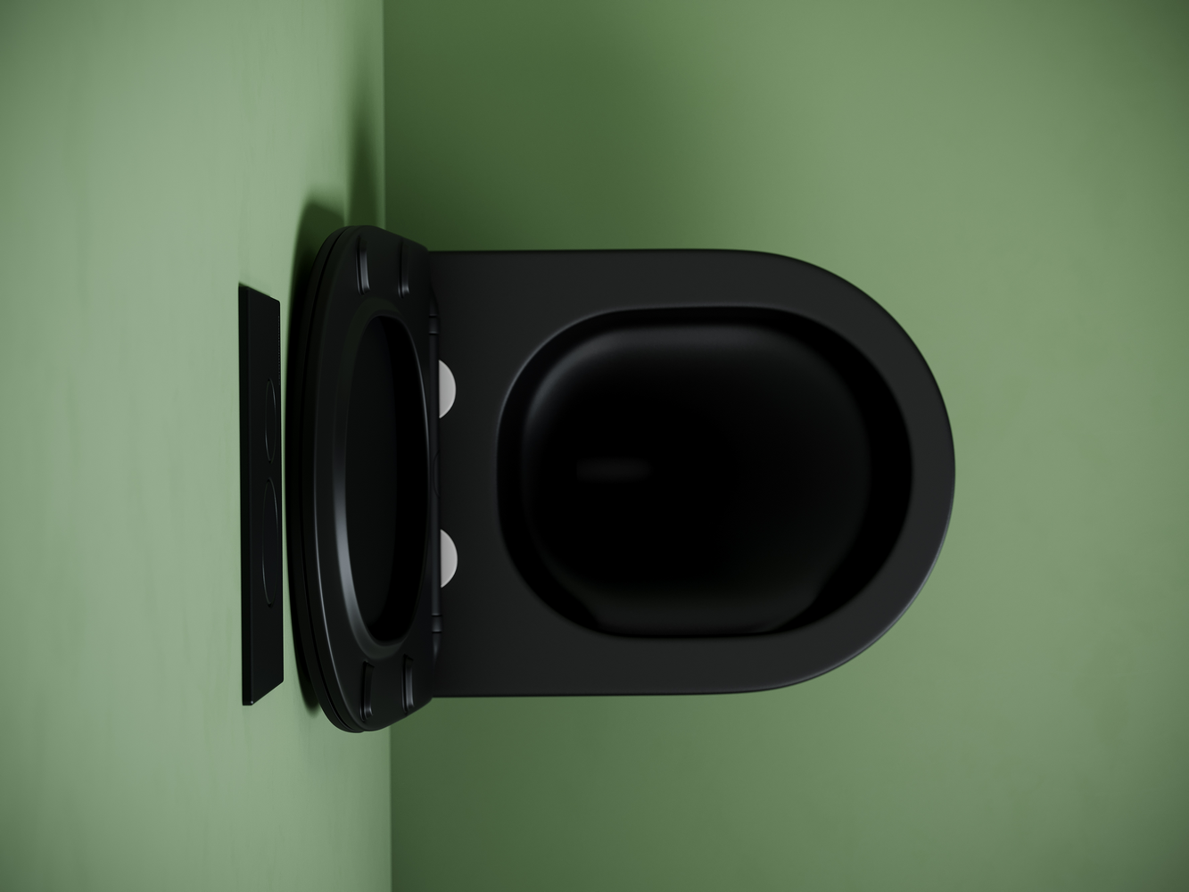 Подвесной унитаз UNO безободковый, смыв Торнадо, с крепежом для полностью скрытого монтажа, ультратонким сидением с функцией быстрого снятия и крышкой с функцией плавного закрытия, цвет черный матовый