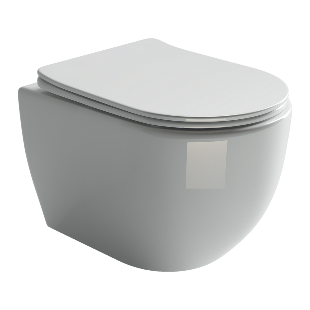 Подвесной унитаз Mia Rimless, глубокий смыв, с крепежом для полностью скрытого монтажа, ультратонким сидением и крышкой с функцией плавного закрытия