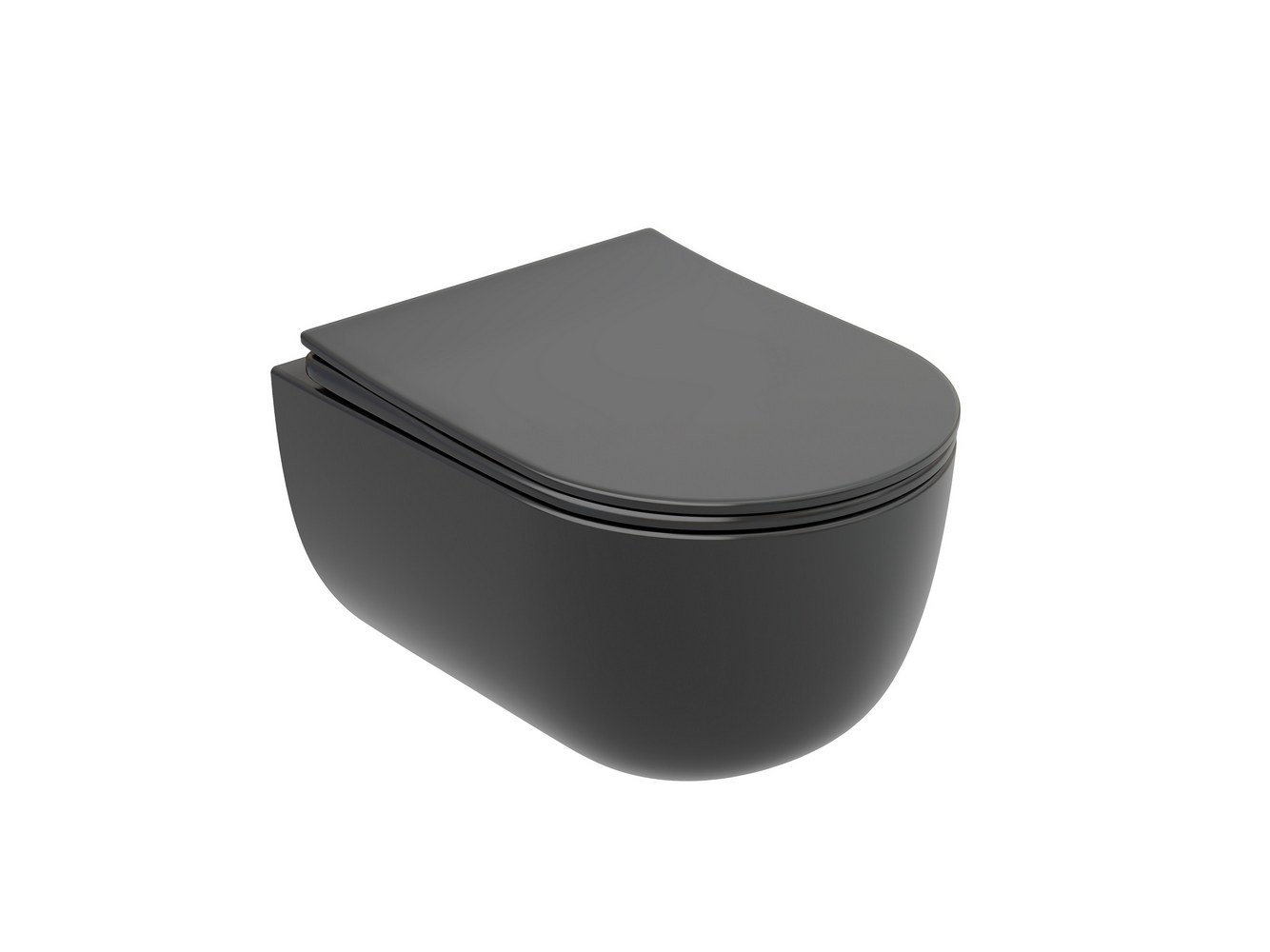 Подвесной унитаз Modena Rimless (цвет Темный Антрацит Матовый), глубокий смыв, с крепежом для полностью скрытого монтажа, ультратонким сидением и крышкой с функцией плавного закрытия, дюропласт