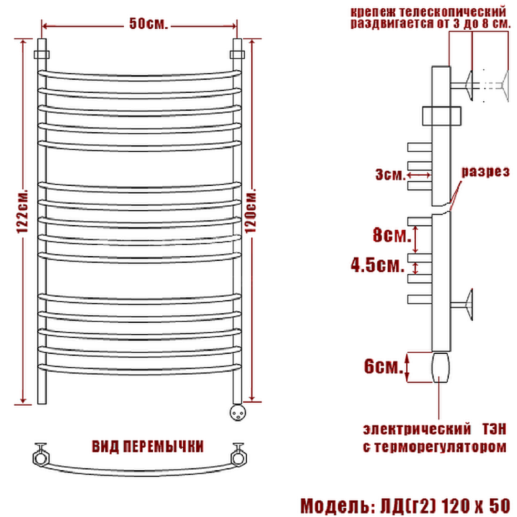 Полотенцесушитель Электрич. Ника ARC ЛД (Г2) 120/50 правый тэн – купить за 23 230 ₽ | ПРО100 ВАННА