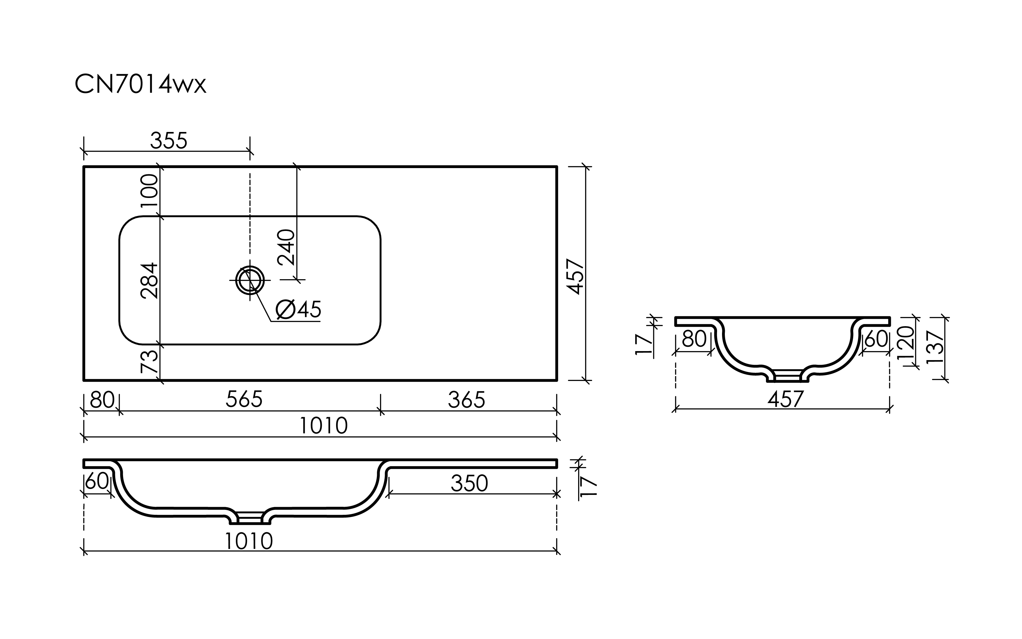 Раковина накладная мебельная Ceramicanova Grace без отверстия под смеситель 1010x457x137 чаша слева белый CN7014wx