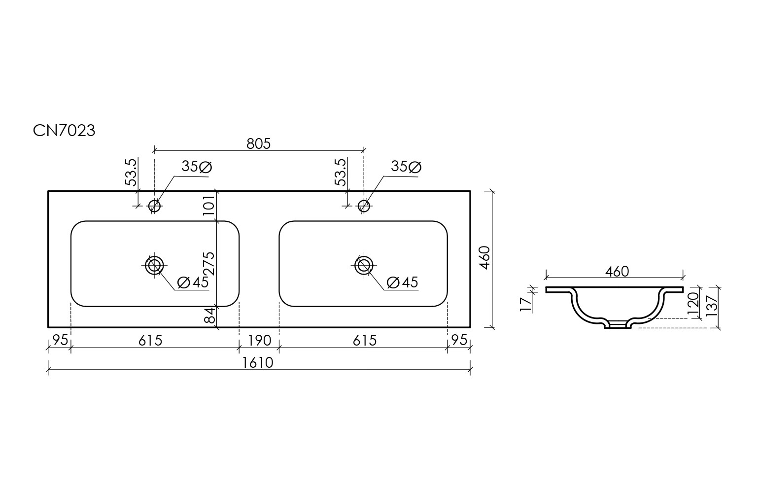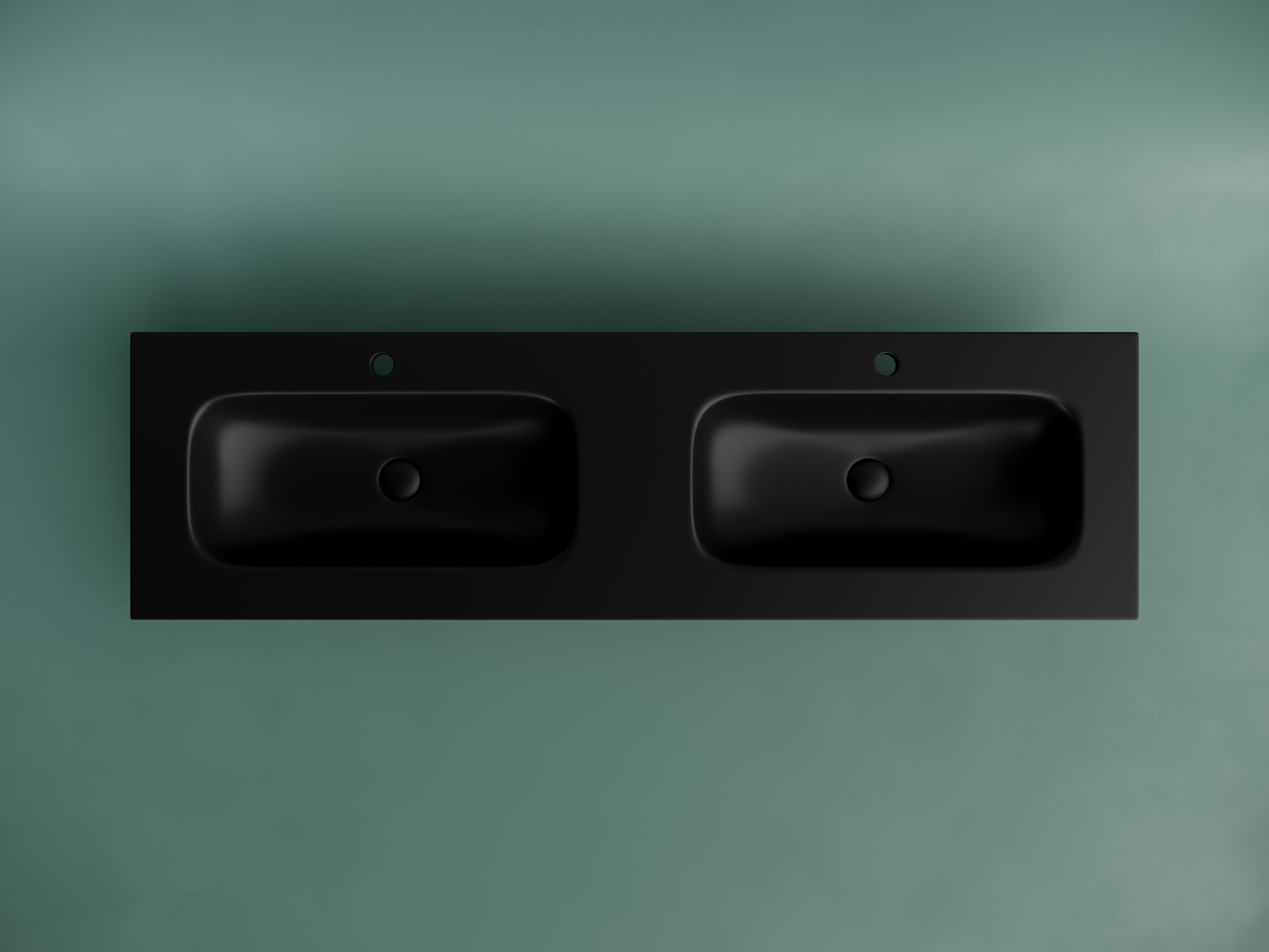 Раковина накладная мебельная CERAMICANOVA Grace прямоугольная 1610x457x137 мм, с двумя чашами и отверстиями под смеситель, цвет черный матовый, CN7023MB