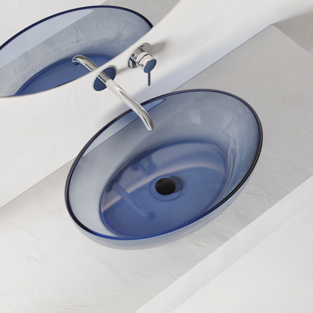 Раковина накладная прозрачная ABBER Kristall AT2801Saphir синяя – купить за 34 000 ₽ | ПРО100ВАННА