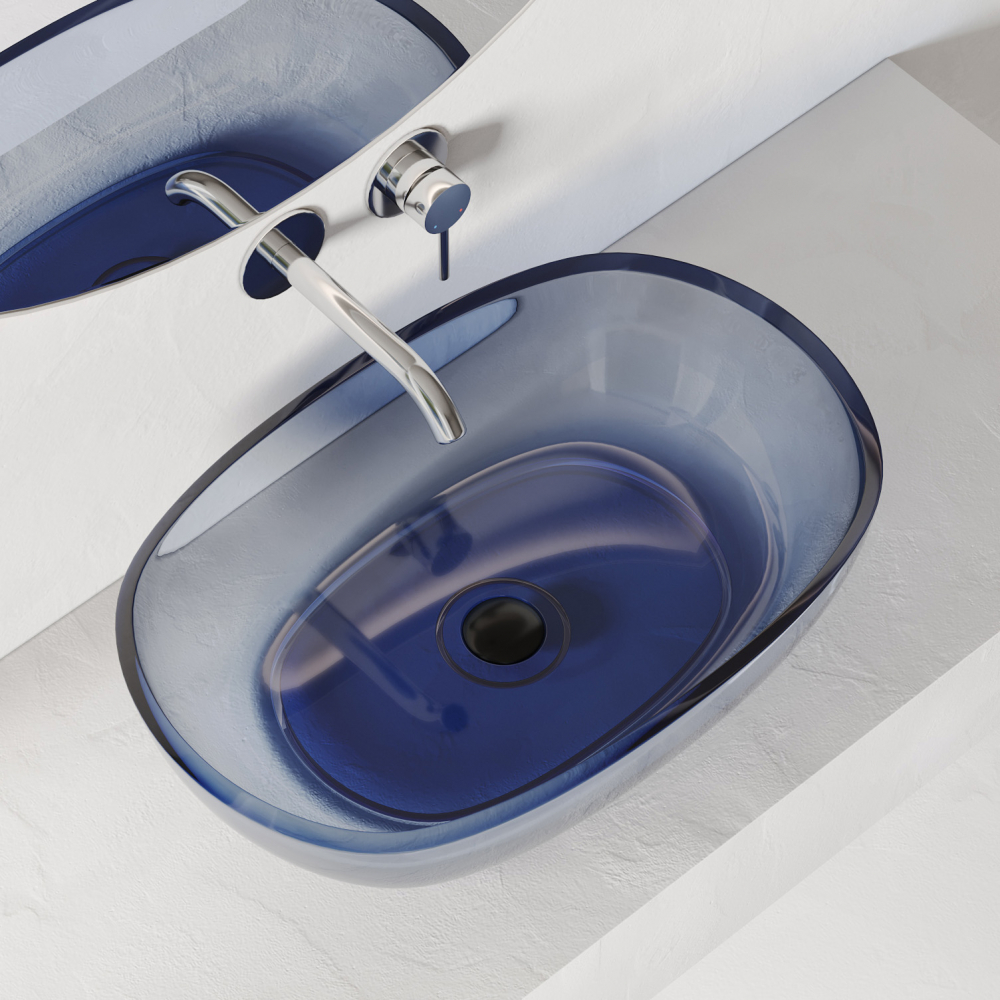 Раковина накладная прозрачная ABBER Kristall AT2805Saphir синяя – купить за 40 800 ₽ | ПРО100ВАННА