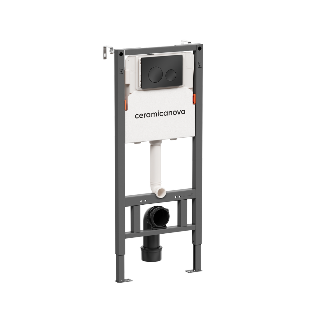 Система инсталляции для унитазов CERAMICANOVA Balance с кнопкой смыва Circle, цвет черный матовый, и креплениями, арт.CN121001MB