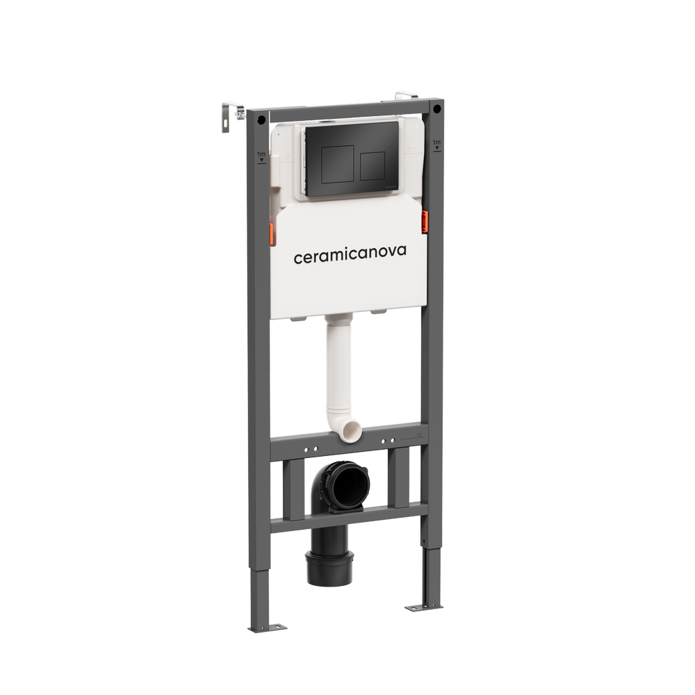 Система инсталляции для унитазов CERAMICANOVA Balance с кнопкой смыва Square, цвет черный матовый, и креплениями, арт. CN121002MB