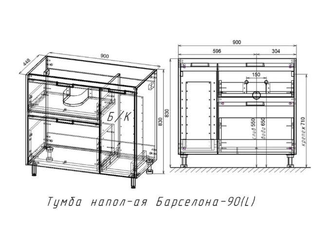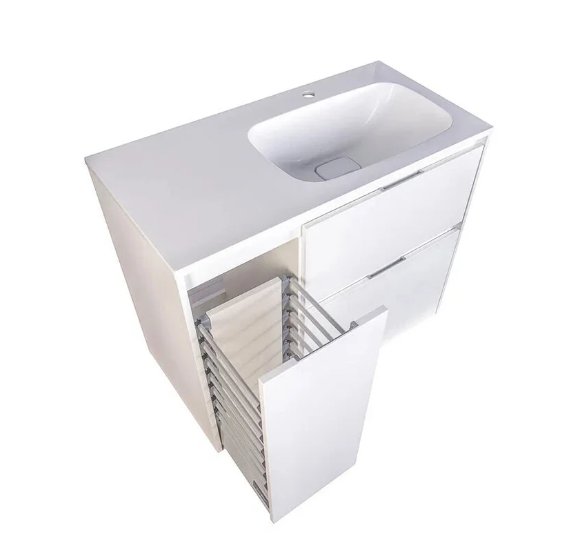 Тумба напольная "Барселона 90" правая (2 ящ.) с выкатной корзиной, Люкс белая, Plus – купить за 26 585 ₽ | ПРО100 ВАННА
