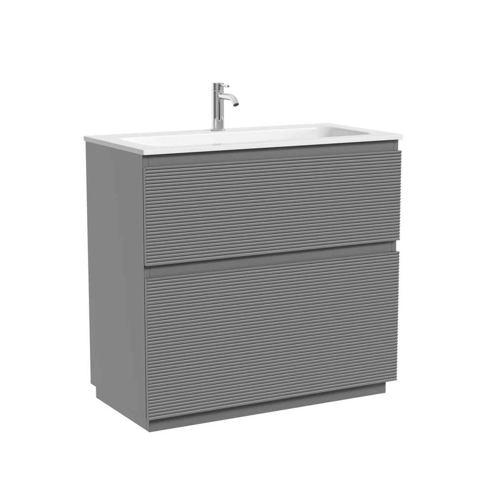 На изображении тумба Folk Floor представлена с зеркалом RAY, смесителем из коллекции ETNA и раковиной Grace CN7019