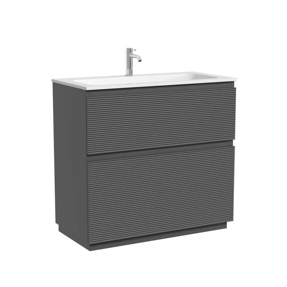 На изображении тумба Folk Floor представлена с зеркалом RAY, смесителем из коллекции ETNA и раковиной Grace CN7019