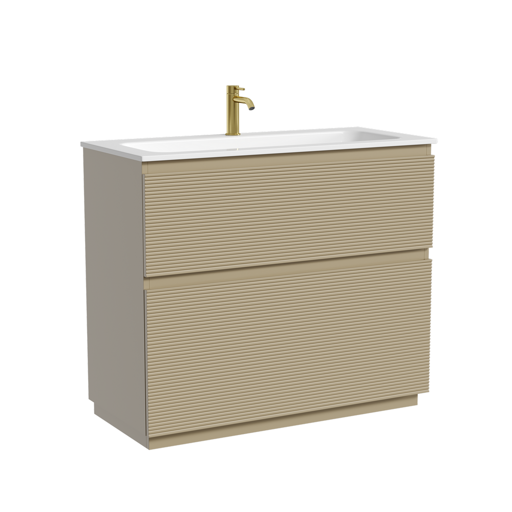 На изображении тумба Folk Floor представлена с зеркалом RAY, смесителем из коллекции ETNA и раковиной Grace CN7013