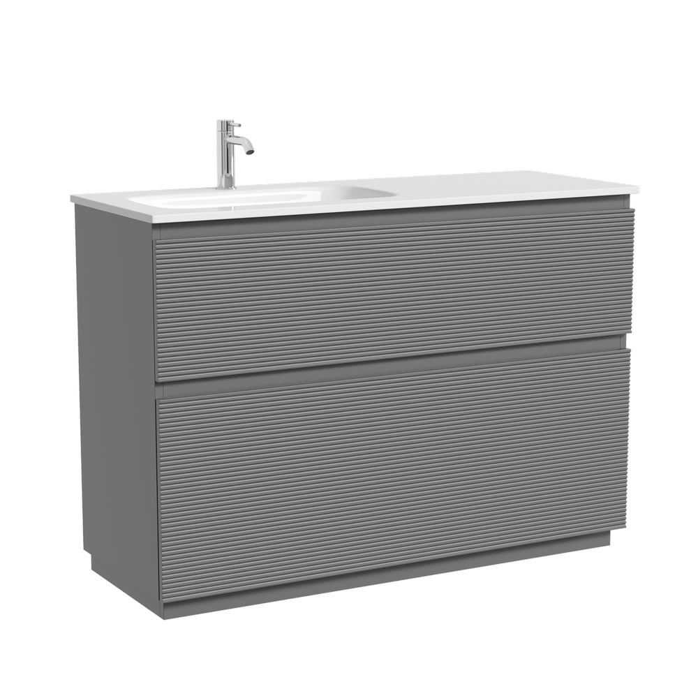 На изображении тумба Folk Floor представлена с зеркалом RAY, смесителем из коллекции ETNA и раковинами Grace CN7020