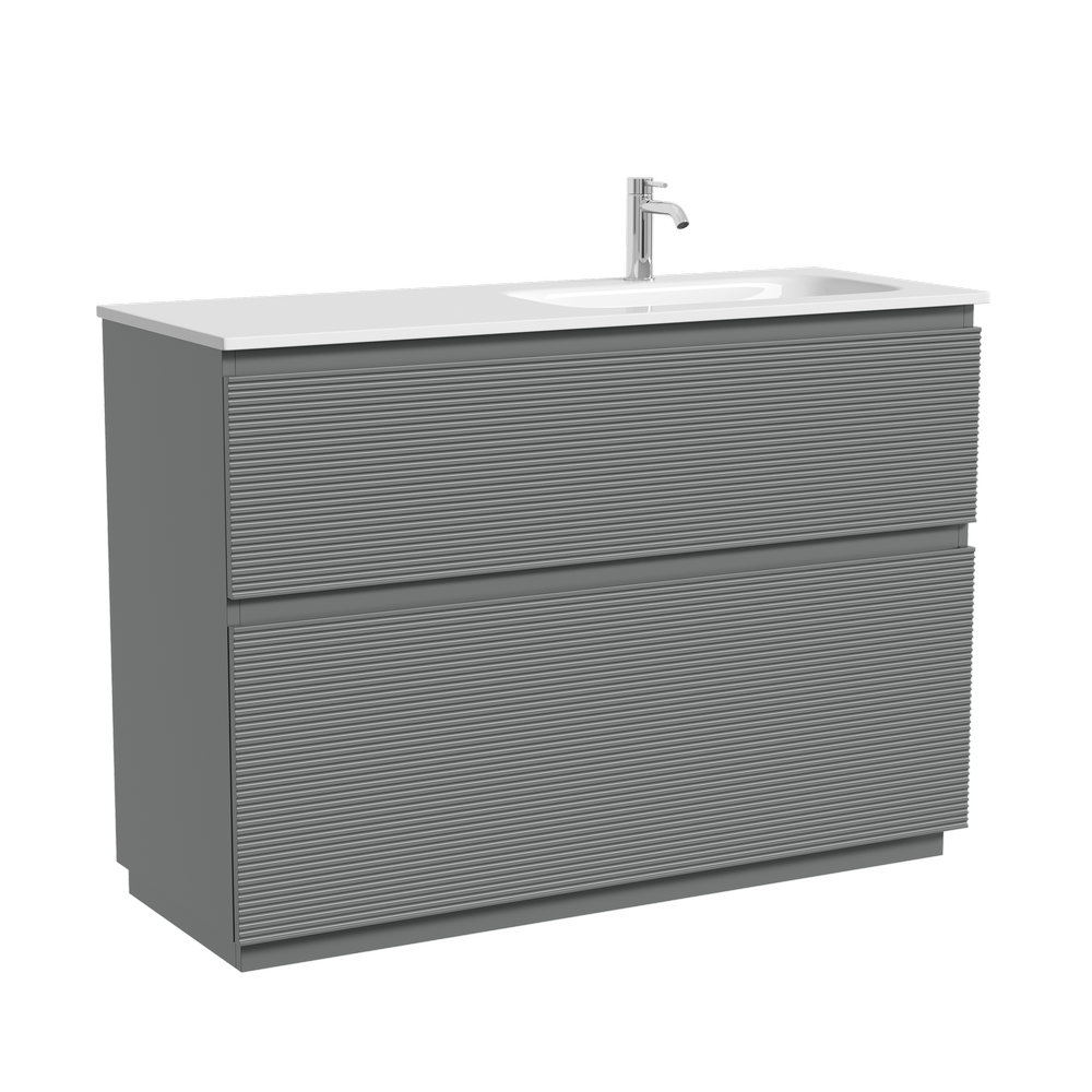 На изображении тумба Folk Floor представлена с зеркалом RAY, смесителем из коллекции ETNA и раковинами Grace CN7021
