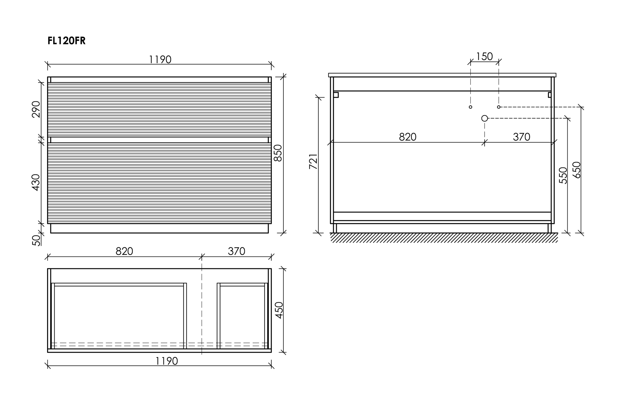 Тумба напольная с двумя выдвижными ящиками с доводчиками скрытого монтажа