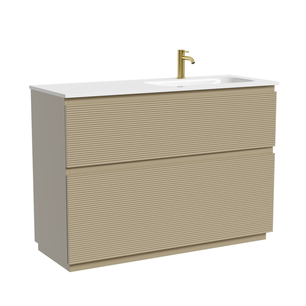 На изображении тумба Folk Floor представлена с зеркалом RAY, смесителем из коллекции ETNA и раковинами Grace CN7021
