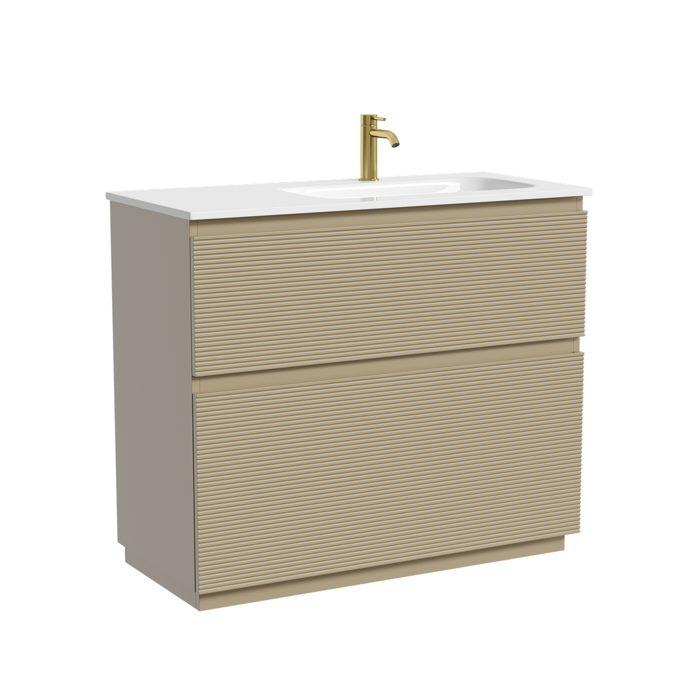 На изображении тумба Folk Floor представлена с зеркалом RAY, смесителем из коллекции ETNA и раковиной Grace CN7015