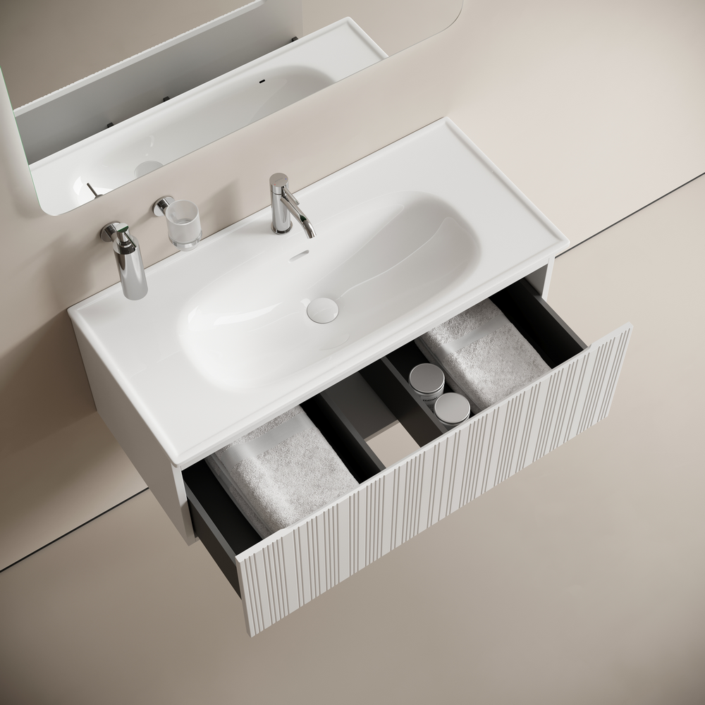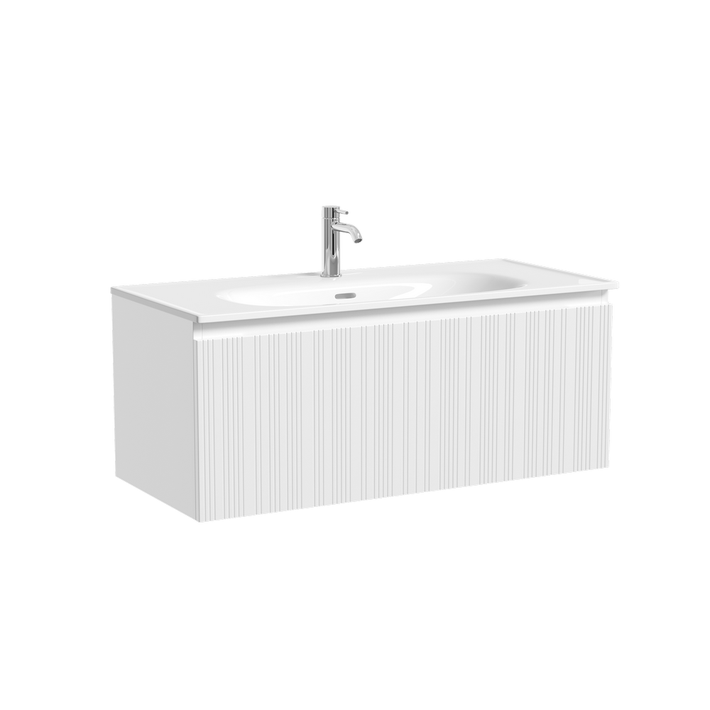 Тумба с одним выдвижным ящиком с доводчиками скрытого монтажа, Выполнена из МДФ с покрытием ПВХ плёнка , комплектующие FIRMAX. Цвет белый матовый