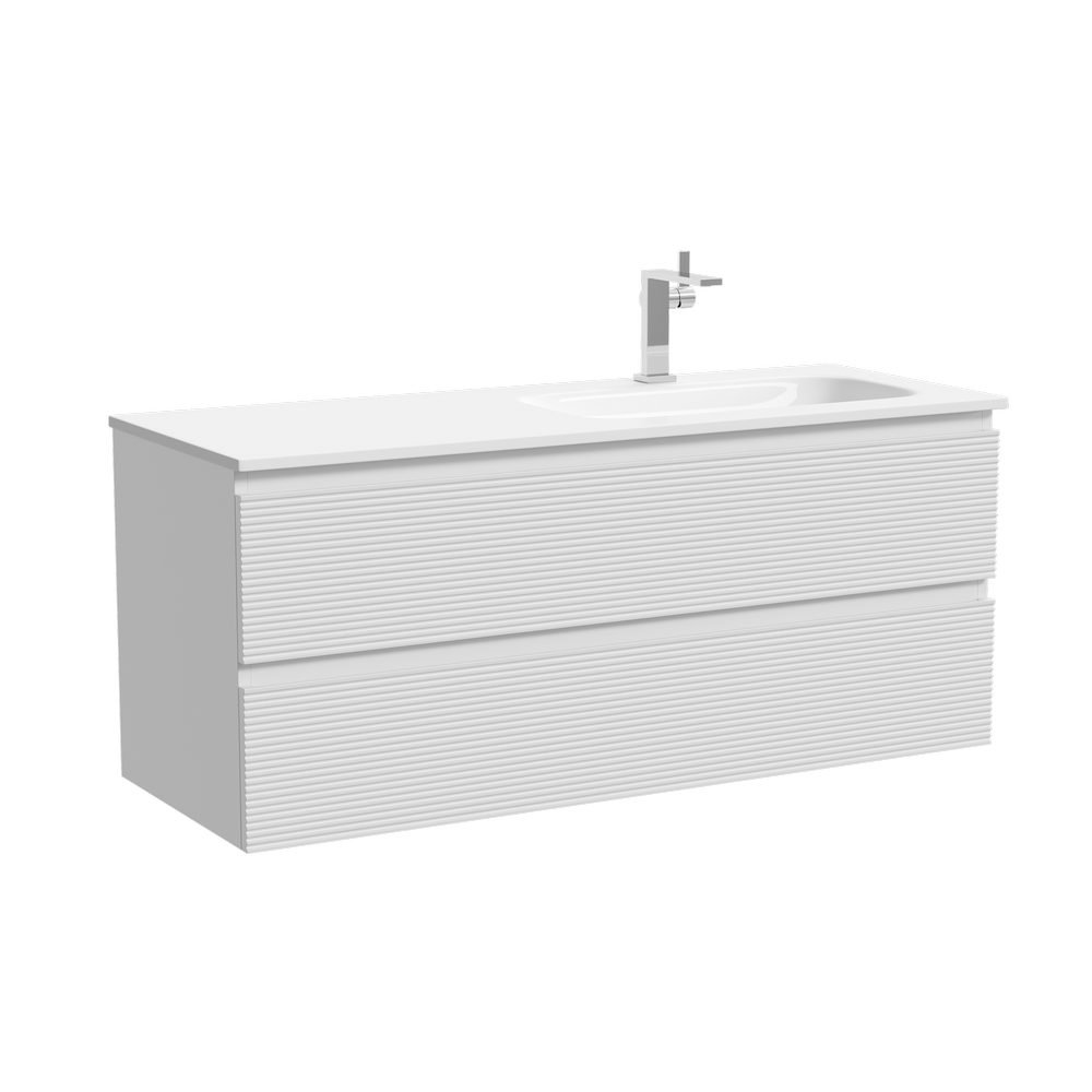 Тумба подвесная с рельефным фасадом SANCOS Folk правая 1195х445х500, c двумя ящиками оснащенными доводчиками скрытого монтажа с системой плавного закрывания, цвет Bianco, арт.FL120RW