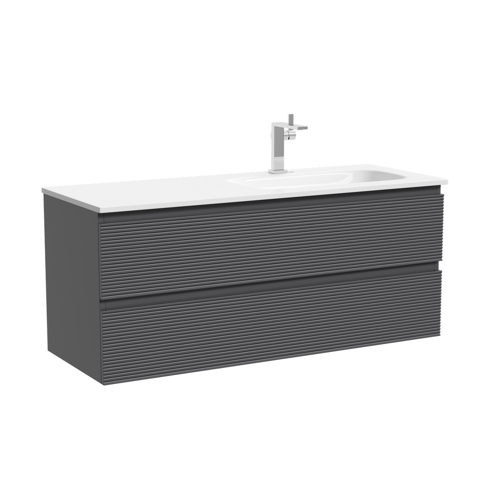 На изображении мебель Snob R представлена с зеркалом SQUARE 120 (SQ120 и смесителем из коллекции LINN (SC9019CH), раковиной Grace CN7021