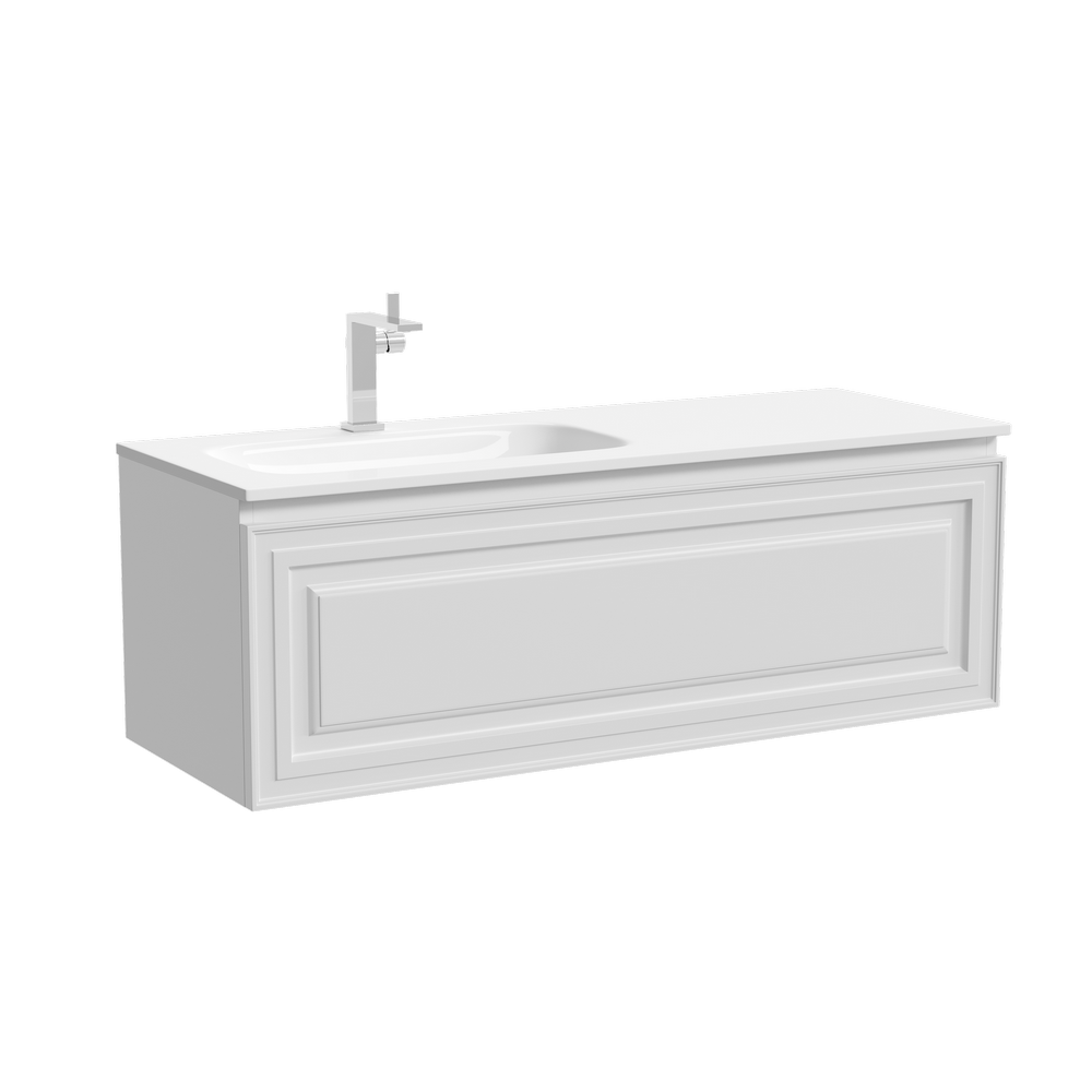 На изображении мебель Snob R представлена с зеркалом SQUARE 120 (SQ120 и смесителем из коллекции LINN (SC9019CH), раковиной Grace CN7020