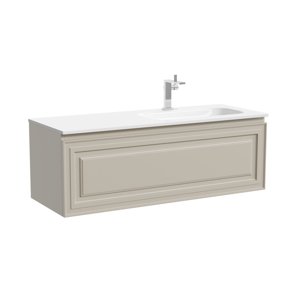На изображении мебель Snob R представлена с зеркалом SQUARE 120 (SQ120 и смесителем из коллекции LINN (SC9019CH), раковиной Grace CN7021