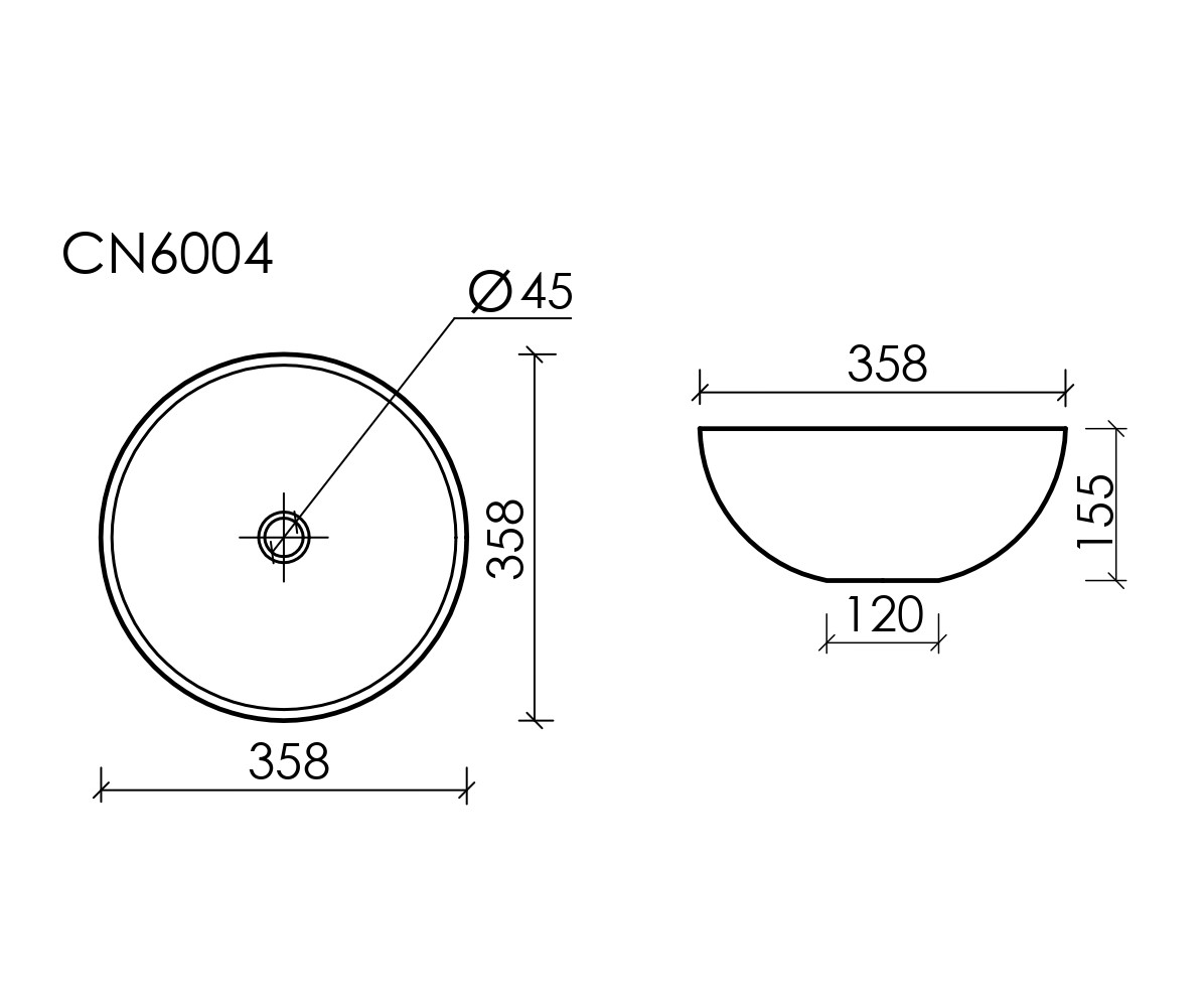 Умывальник чаша накладная круглая (цвет Черный Матовый) Element 358x358x155мм