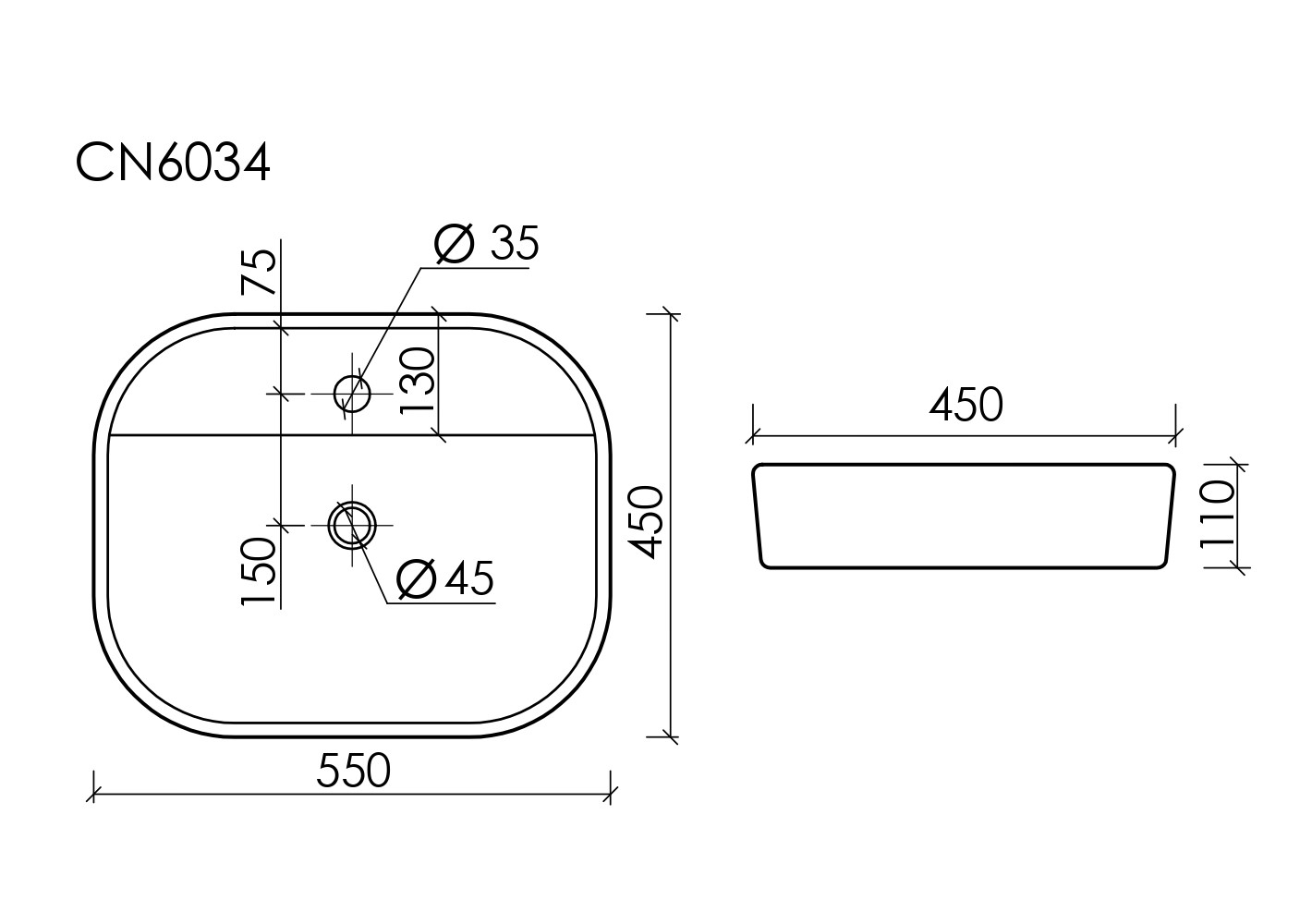 Умывальник чаша накладная прямоугольная Element 550x450x110мм