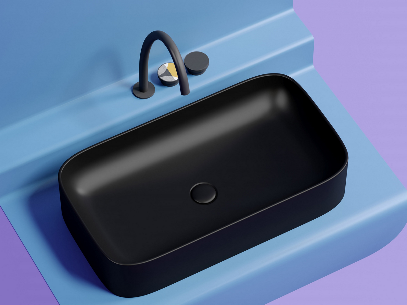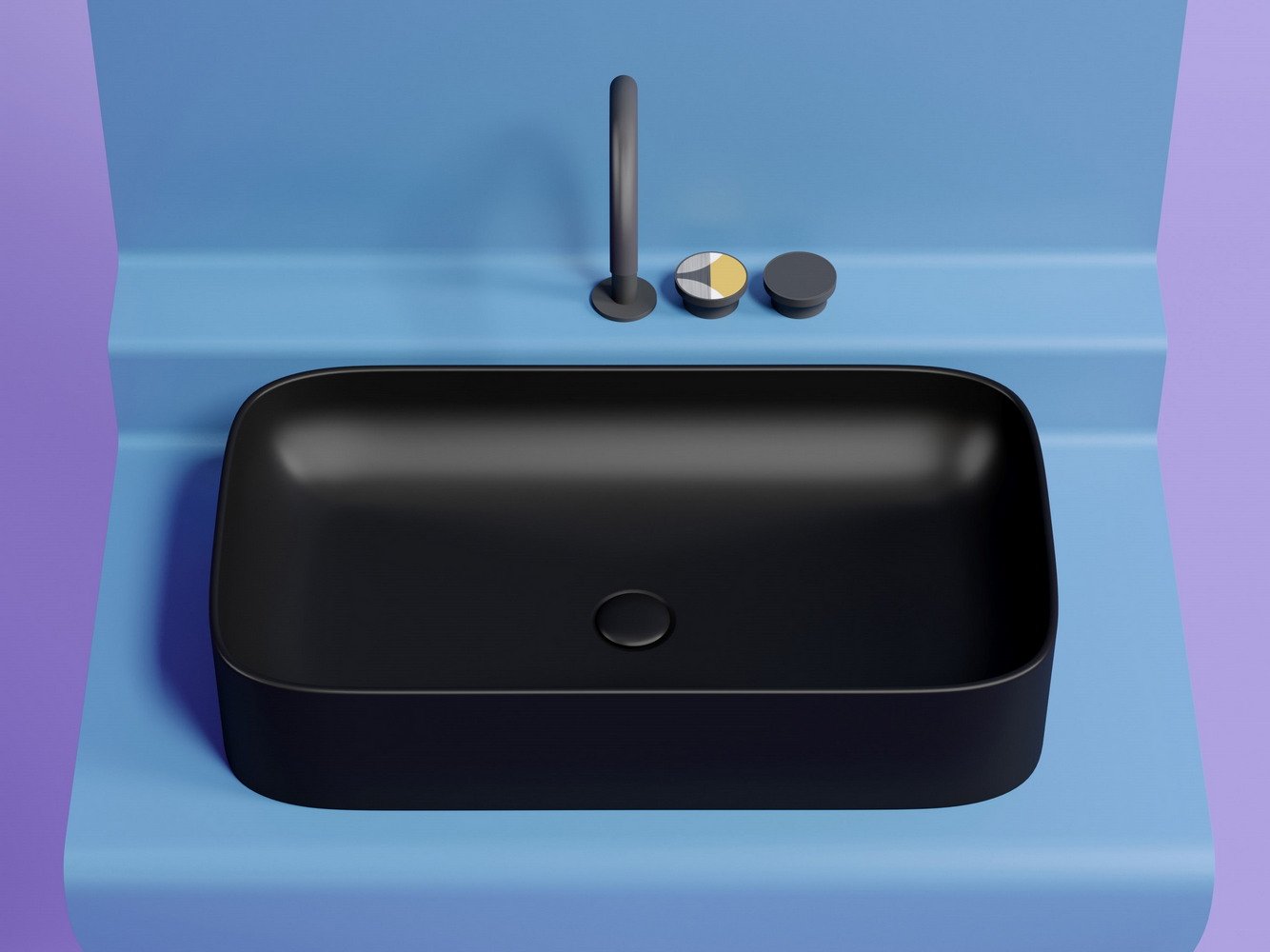 Умывальник чаша накладная прямоугольная (цвет Черный Матовый) Element 705x380x150 мм