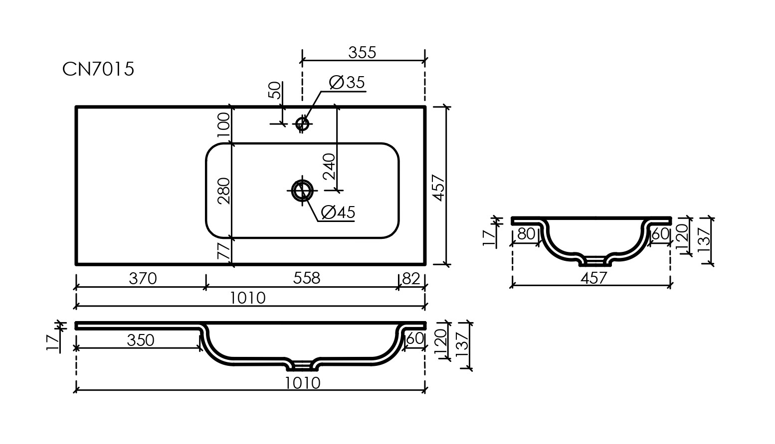 Раковина накладная мебельная Grace прямоугольная, 1010x457x137 мм, чаша справа, с отверстием под смеситель, цвет белый
