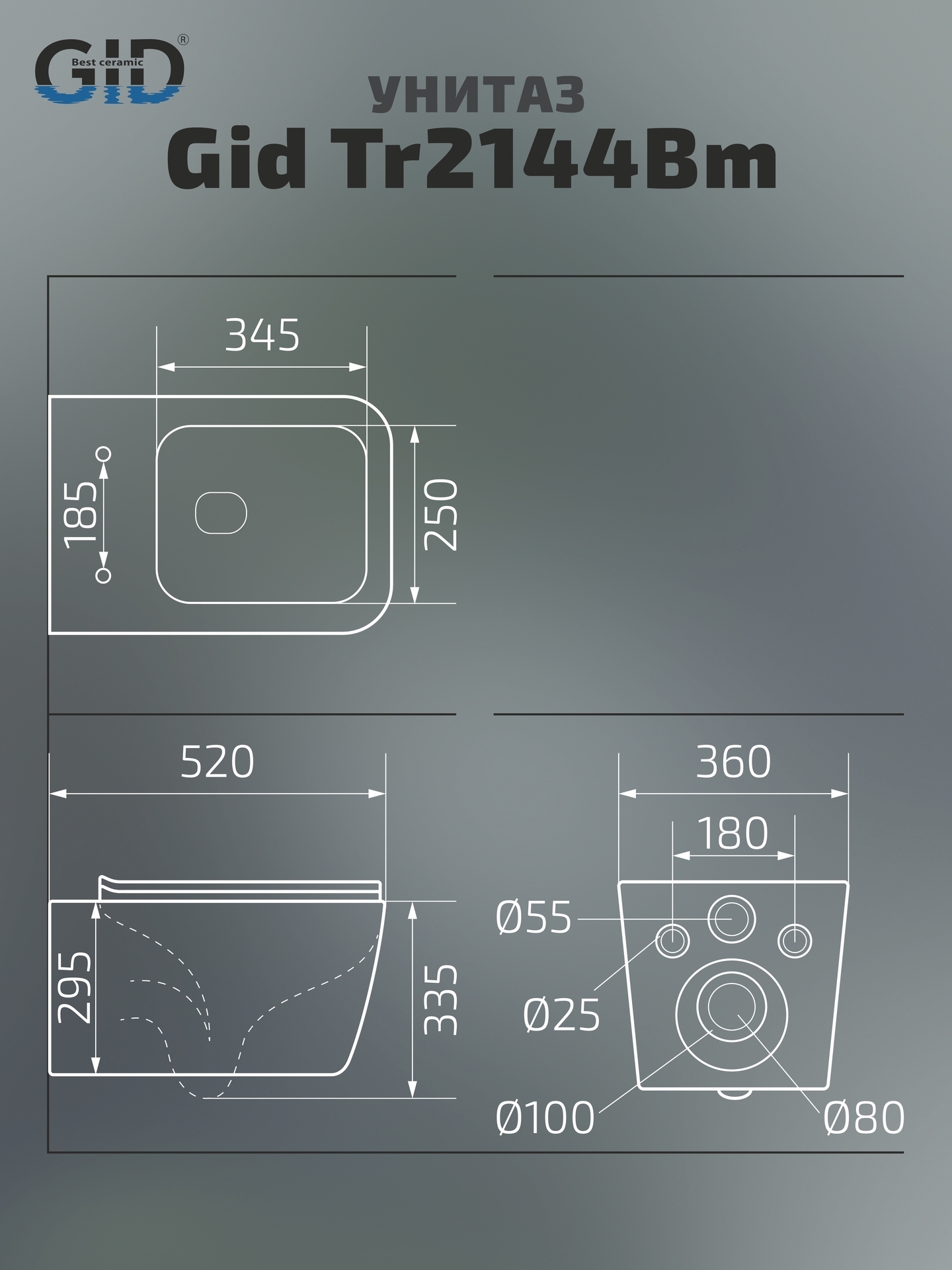 Комплект: подвесной унитаз GiD Tr2144Bm с креплениями для скрытого монтажа; сиденье с креплениями.