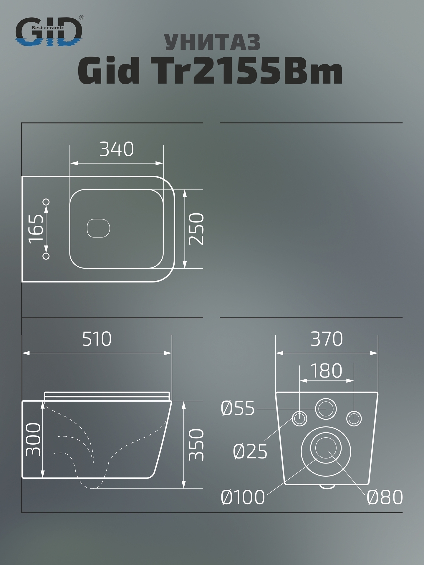 Комплект: подвесной унитаз GiD Tr2155Bm с креплениями для скрытого монтажа; сиденье с креплениями.