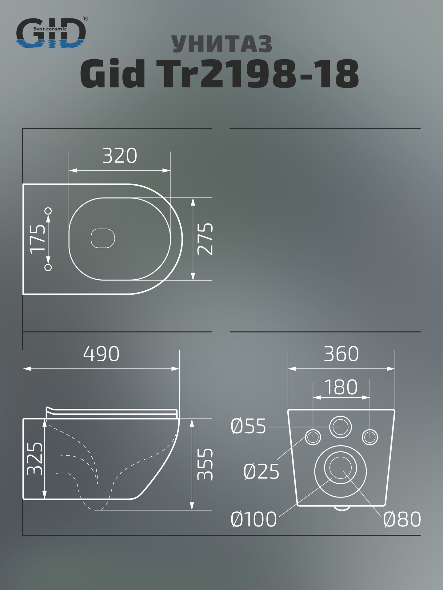 Комплект: подвесной унитаз GiD Tr2198-18 с креплениями для скрытого монтажа; сиденье с креплениями.